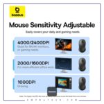 موس Baseus BS-F02 مجهز به دکمههای قابل تنظیم است که به شما اجازه میدهد عملکردهای مختلف را به دکمههای مورد نظر خود اختصاص دهید. این ویژگی به افزایش بهرهوری و شخصیسازی تجربه کاربری کمک میکند.