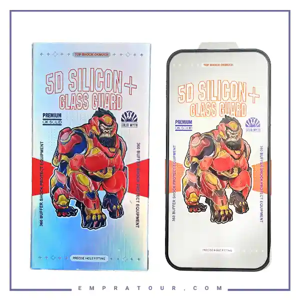 ضربات و شوکهای ناگهانی را به خوبی تحمل کند و از ایجاد آسیب به صفحه نمایش جلوگیری نماید. ترکیب مواد مقاوم و ساختار چندلایه، گلس 5D Silicon Plus