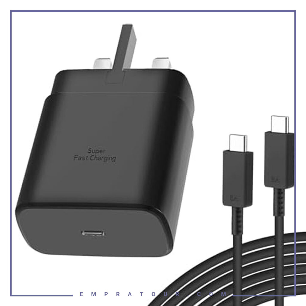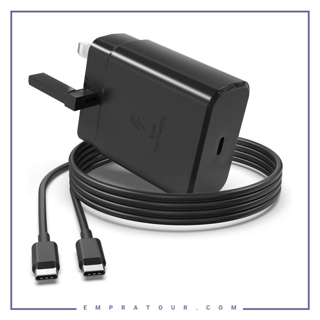 همراه با شارژر ، یک کابل USB-C به USB-C به طول ۱ . ۸ متر ارائه میشود که برای اتصال به دستگاههای جدید با پورت USB-C طراحی شده است . طول مناسب کابل به شما این امکان را میدهد که به راحتی دستگاه خود را در هر موقعیتی شارژ کنید .