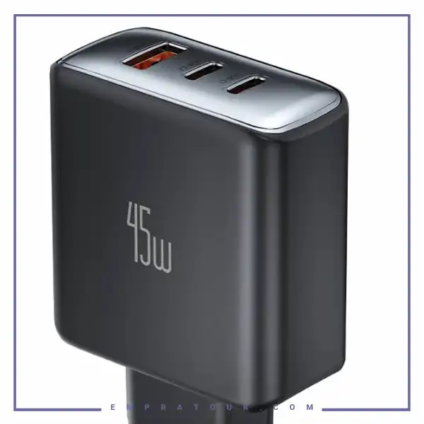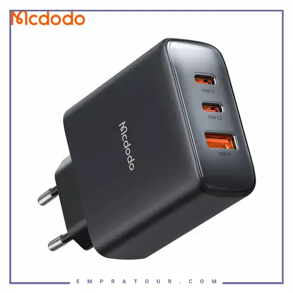 آداپتور 45 وات مک دودو مجهز به دو پورت تایپ سی و یک پورت USB است که به شما این امکان را میدهد که سه دستگاه را بهطور همزمان شارژ کنید.
