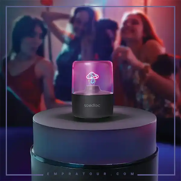نور محیطی اسپیکر به ویژه در فضاهای تاریک یا مهمانیها، جذابیت بیشتری به محیط اضافه میکند و باعث میشود کاربران علاوه بر گوش دادن به موسیقی، از تجربه بصری جذاب نیز بهرهمند شوند.