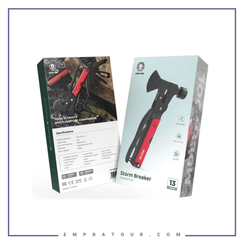 تبر و چکش چندکاره گرین لاین Green Lion Storm Breaker Multitool Axe GNSTRMHM13R یک ابزار بسیار کاربردی و ایده‌آل برای کمپینگ، گردش و فعالیت‌های در فضای باز است. این ابزار با ویژگی‌های متنوع و طراحی هوشمندانه، می‌تواند نیازهای مختلف شما را برآورده سازد. در ادامه، به بررسی ویژگی‌ها و ابزارهای مختلف این مدل می‌پردازیم .