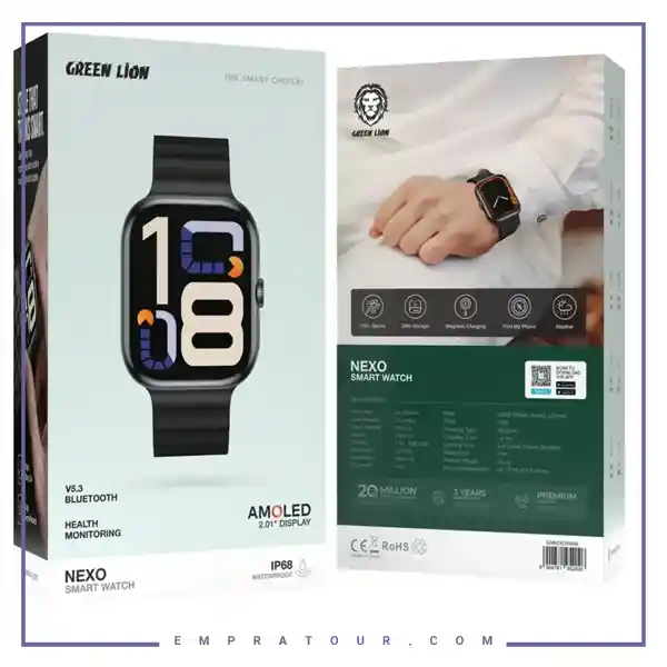 Green Lion Nexo Smart Watch GNNEXOSWBK یک ساعت هوشمند جامع و مدرن است که با ویژگیهای زیر تجربهای کامل از مدیریت سلامت، ورزش و زندگی روزمره ارائه میدهد: