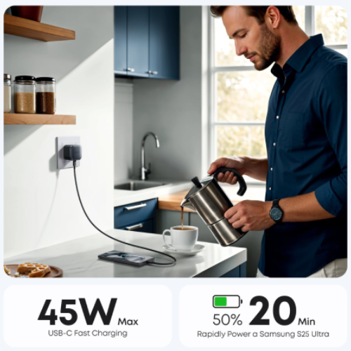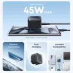 ۴۵ وات، از پروتکل Power Delivery (PD) پشتیبانی میکند و بهویژه برای گوشیهای.