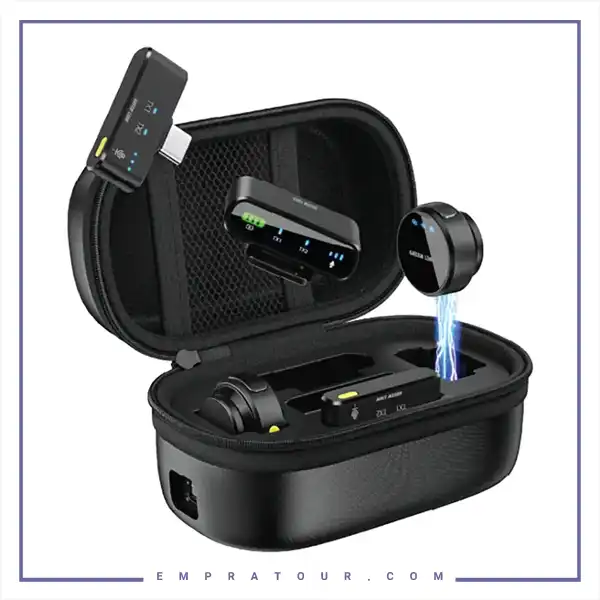 کیف چرمی باعث میشود میکروفون در برابر ضربه و آسیب محافظت شود و گیره مغناطیسی از افتادن و گم شدن میکروفون جلوگیری میکند. این ویژگیها مخصوصاً برای استفاده در سفر ، محیطهای بیرونی و تولید محتوا در شرایط مختلف اهمیت زیادی دارند.