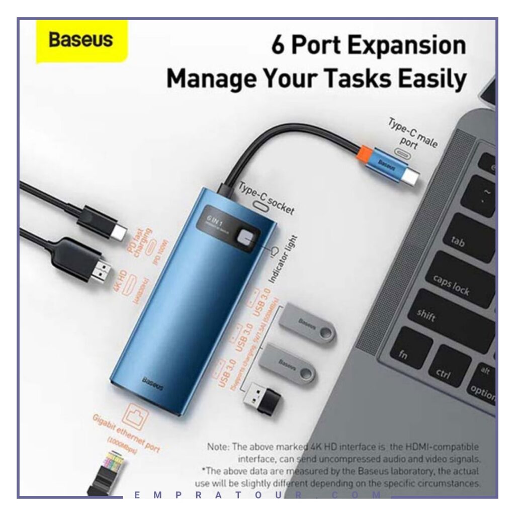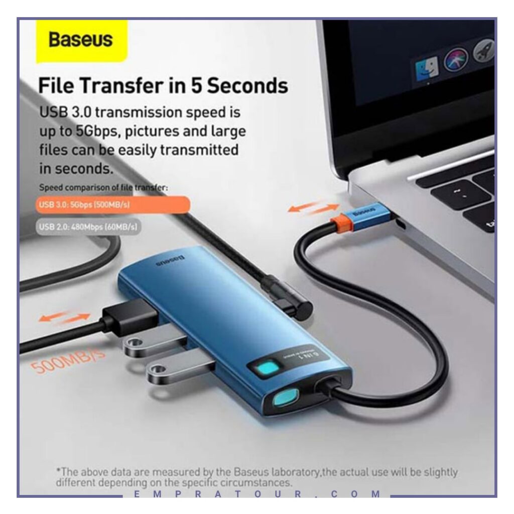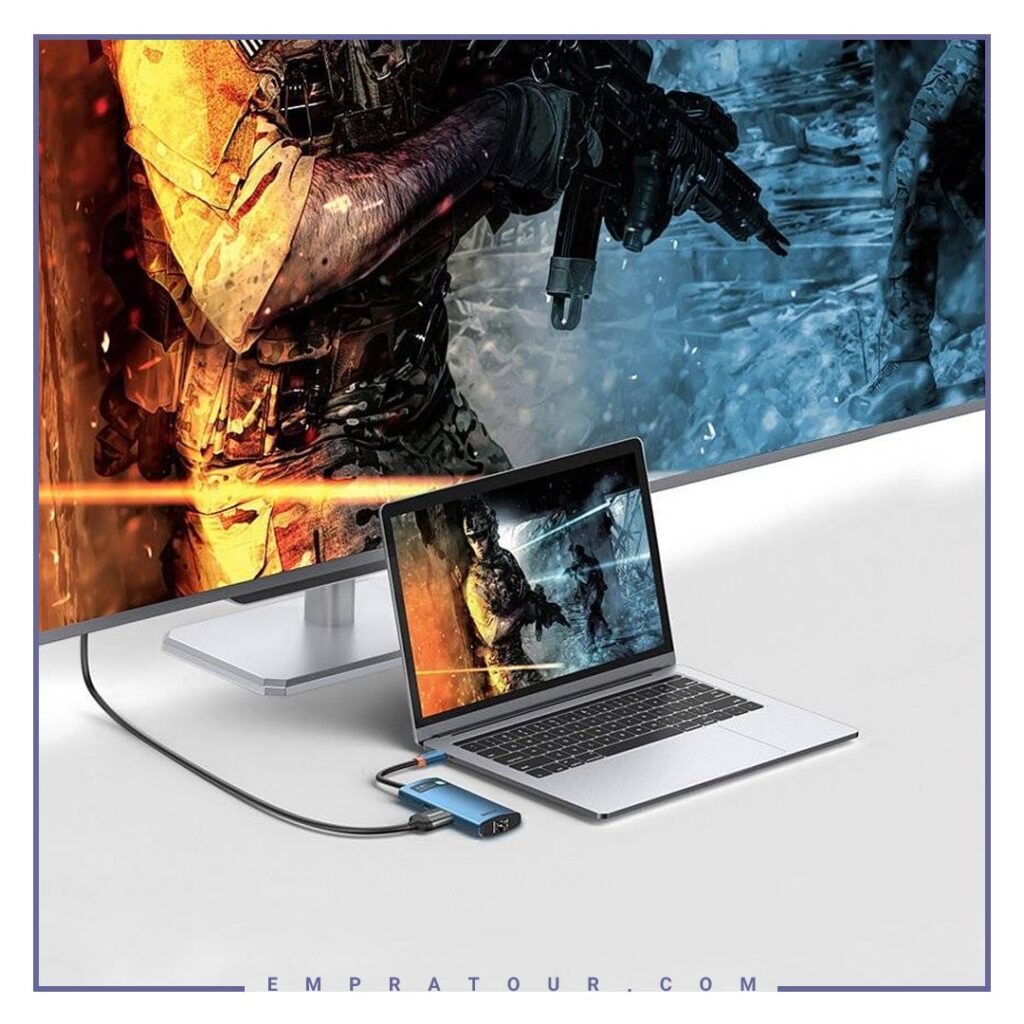 نوت بوک های معمولی تایپ C ، تلفن های همراه مانند Apple Book Pro 2016/2017/2018/2019/2020 ، Apple Book Air 2018/2019/2020 و … است . هاب 6 منظوره بیسوس دارای 6 پورت می باشد و تقریبا پاسخ گوی اکثر نیازهای شما می باشد . با داشتن قابلیت OTG خواندن اطلاعات USB را روی دستگاه موبایل بدون نیاز به PC و لپ تاپ را فراهم میکند . یعنی به راحتی می توانید با اتصال فلش یا هارد به پورت USB اطلاعات آن ها را در گوشیتان باز کنید و یا به تلویزیون انتقال دهید .