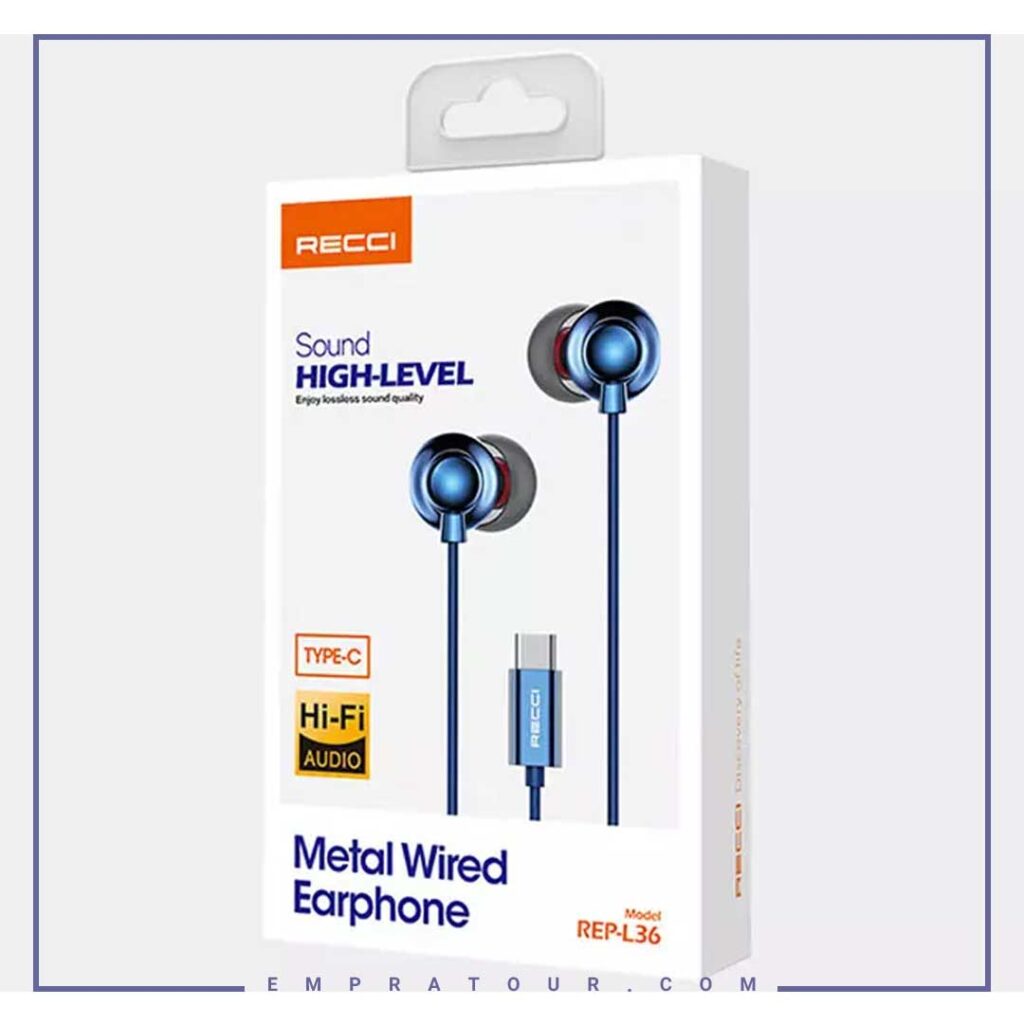 هندزفری سیمی تایپ سی رسی RECCI REP-L36 یک هندزفری با سیم است که با