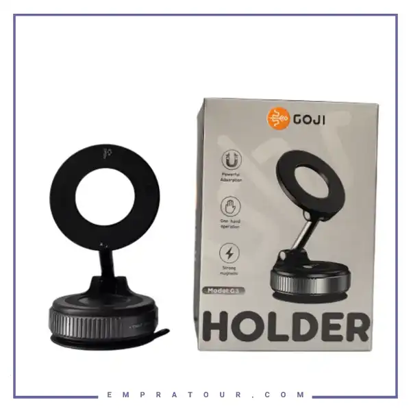 هولدر وکیومی گوجی Goji Holder G3 یک ابزار کاربردی، حرفه‌ای و قابل حمل برای نگه داشتن موبایل روی سطوح صاف است. با نصب وکیومی مطمئن، اتصال مگنتی برای گوشی‌های دارای MagSafe و امکان استفاده با قاب مگنتی برای سایر گوشی‌ها، همراه با پایه تلسکوپی برای تنظیم زاویه، این هولدر تجربه‌ای راحت، ایمن و بدون دغدغه از کار با موبایل ارائه می‌دهد.