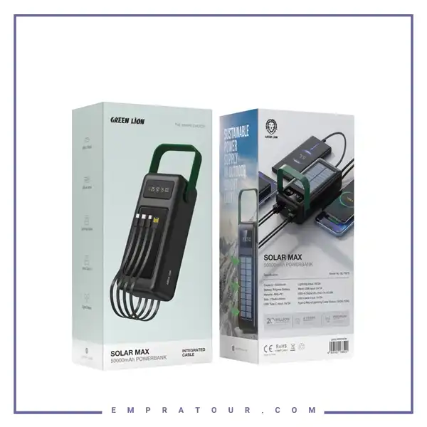 استفاده از Green Lion Solar Max Power Bank GNSLRPB50K باعث میشود دیگر نیازی به نگرانی در مورد اتمام شارژ دستگاهها در محیطهای بیرونی نباشد و تجربهای حرفهای، امن و راحت از تامین انرژی داشته باشید. این پاوربانک ترکیبی از کارایی، دوام، ایمنی و قابلیت حمل است که آن را به انتخابی بینظیر برای هر کاربر حرفهای و فعال تبدیل میکند.