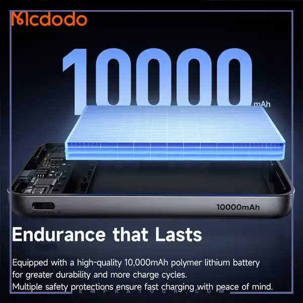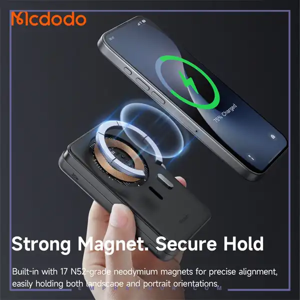 پاوربانک Mcdodo MagQ Magnetic MC-631 نمونهای از ترکیب طراحی هوشمند، فناوری مدرن و عملکرد حرفهای است. این محصول با ظرفیت ۱۰,۰۰۰ میلیآمپر ساعت، شارژ سریع بیسیم Qi2، اتصال مغناطیسی MagSafe و قابلیت استفاده به عنوان استند، تجربهای متفاوت و کاربردی از شارژ گوشی و گجتهای همراه ارائه میدهد.