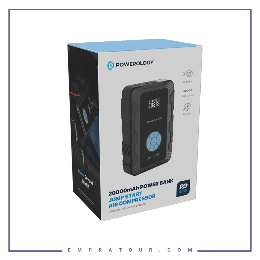 پاوربانک و جامپ استاترت 20000 پاورولوژی PPBCHA43 یک ابزار قدرتمند و چندمنظوره است که به ویژه برای شرایط اضطراری و سفرهای جاده‌ای