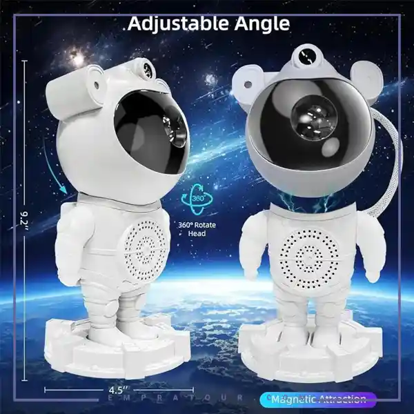 چراغ خواب کهکشانی آدم فضایی به گونهای طراحی شده که علاوه بر جنبه تزئینی ، عملکردی کاملاً کاربردی نیز داشته باشد . نور چراغ قابل تنظیم است و با استفاده از ریموت میتوان شدت نور ، رنگها و چرخش ۳۶۰ درجه آن را کنترل کرد . اسپیکر بلوتوث داخلی امکان پخش موسیقی ، داستان صوتی و صداهای آرامشبخش را فراهم میکند و چراغ را به یک دستگاه چندمنظوره برای کودک تبدیل میکند .