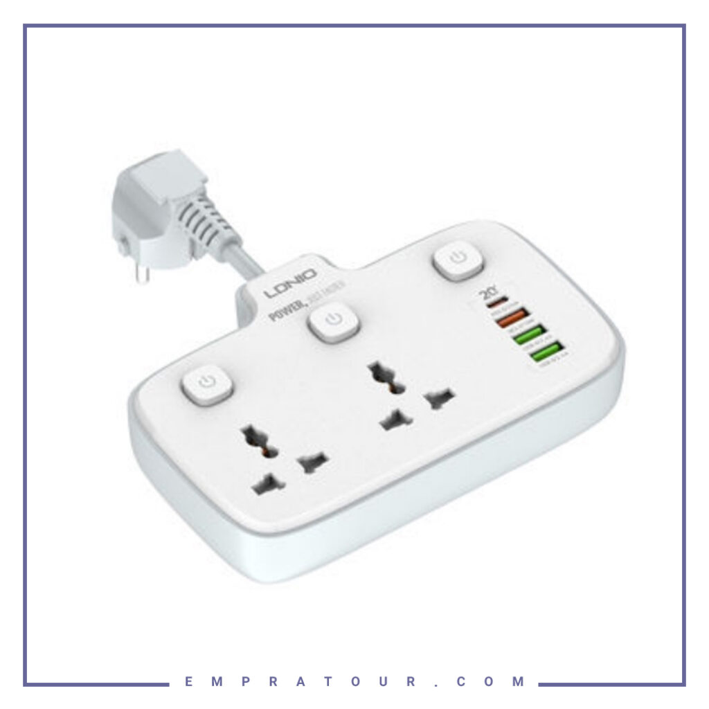 و ابزار دیجیتالی است یک محصولی را به نام چند راهی برق الدینیو طراحی و تولید می کند که می تواند مشکل اکثر کاربران را حل کند. و دیگر با مشکلات همزمان شارژ کردن وسایلتان و یا کار کردن با چند وسیله بدون نگرانی برای کاهش باطری مواجه نشوید و خیلی راحت و بدون نگرانی از آن استفاده کنید .