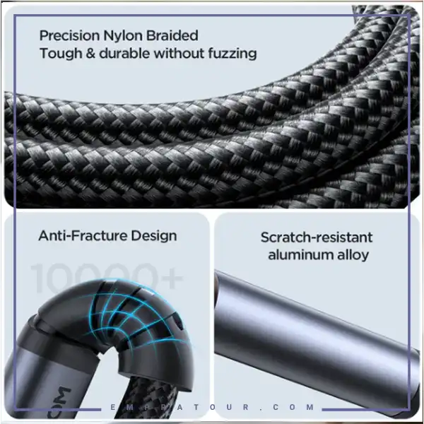کابل Joyroom SY-A07 دارای طراحی مقاوم و با دوام است که در استفاده روزمره و سفر، عملکرد خود را حفظ می‌کند. کابل مقاوم در برابر کشش، خم شدن و گره خوردن ساخته شده است و می‌تواند برای مدت طولانی بدون افت کیفیت مورد استفاده قرار گیرد. طراحی حرفه‌ای و مقاوم کابل باعث می‌شود کاربران بتوانند آن را با اطمینان در محیط‌های مختلف استفاده کنند و از کیفیت بالای صدا مطمئن باشند.