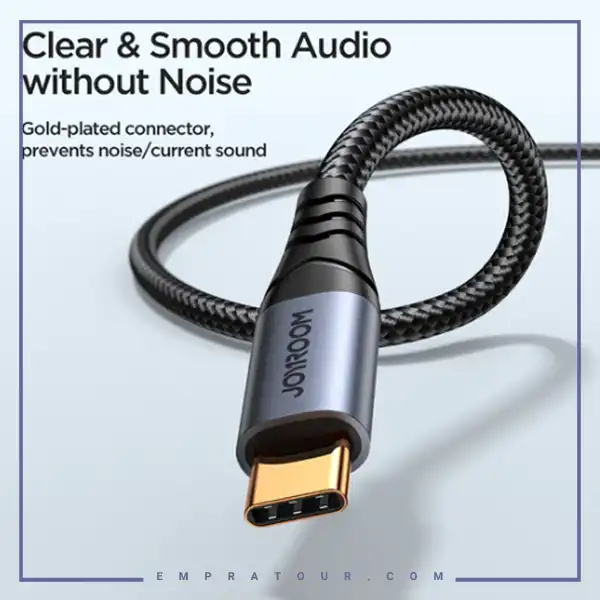 کابل تبدیل تایپ سی به جک ۳.۵ میلی‌متری Joyroom Type-C To AUX SY-A07 با طول ۱.۲ متر، پشتیبانی از کیفیت صدای HiFi و کانکتورهای آبکاری شده با طلا، یک محصول حرفه‌ای و با کیفیت برای کاربران دستگاه‌های تایپ سی و آیفون سری ۱۵ به بالا است. این کابل انتقال صدا با کیفیت بالا، دوام طولانی مدت و سازگاری گسترده را با هم ارائه می‌دهد و تجربه‌ای مطمئن و لذت‌بخش از گوش دادن به موسیقی فراهم می‌کند. Joyroom SY-A07 انتخابی ایده‌آل برای علاقه‌مندان به موسیقی، گیمرها و کاربران حرفه‌ای است که به دنبال کیفیت صدا، اتصال پایدار و طراحی مقاوم هستند. این کابل ترکیبی از عملکرد حرفه‌ای، ایمنی و زیبایی است که تجربه‌ای بی‌نقص از استفاده هدفون و سیستم‌های صوتی ارائه می‌دهد.