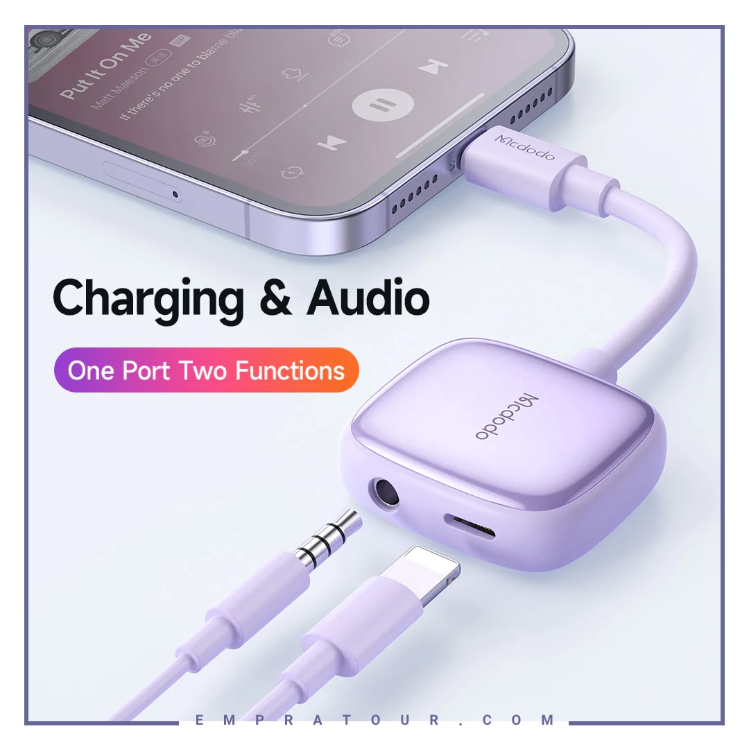 کابل تبدیل لایتنینگ اتصال همزمان هندزفری و شارژر مک دودو CA-2740 یک محصول پیشرفته است که به شما امکان اتصال همزمان هندزفری