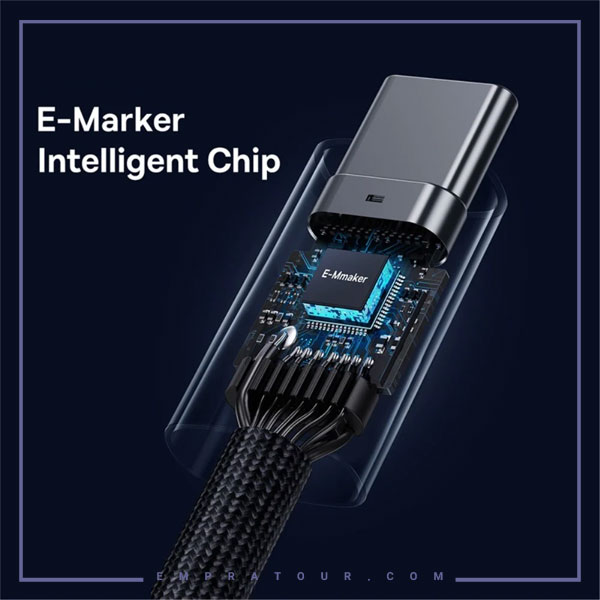 است که امکان انتقال تصویر با رزولوشن 8K در فرکانس 60 هرتز را فراهم میکند. همچنین، با توان شارژ 240 وات، این کابل امکان