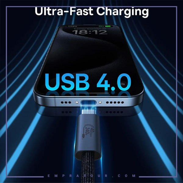 این کابل با پشتیبانی از استاندارد USB 4، انتقال داده را با سرعت بسیار بالا تا 40 گیگابیت بر ثانیه فراهم میکند، که این امکان