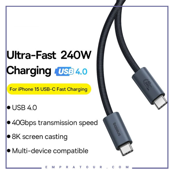 بر ثانیه است که این امکان را به شما میدهد تا فایلهای بزرگ را با سرعت بسیار بالا منتقل کنید. این همه از ویژگیهای برجستهی این کابل با پورت تایپ سی و استاندارد USB 4 است .
