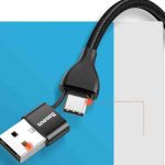 کابل دوسر بیسوس، در یک طرف دارای یک پورت لایتنینگ است و در طرف دیگر یک درگاه تایپ سی قرار دارد و