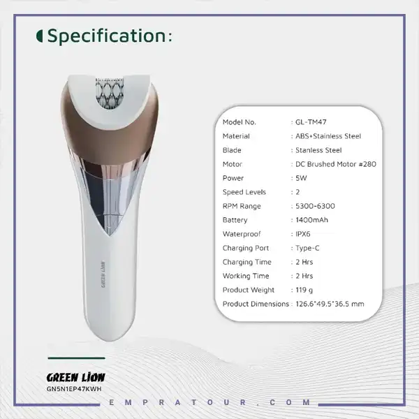 Green Lion 5 in 1 Cordless Epilator Kit GN5N1EP47KWH