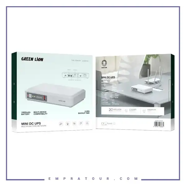 باتری داخلی 10000 mAh با دوام تا 8 ساعت پشتیبانی برق برای مودم، روتر، دوربین و دستگاههای شبکهای.