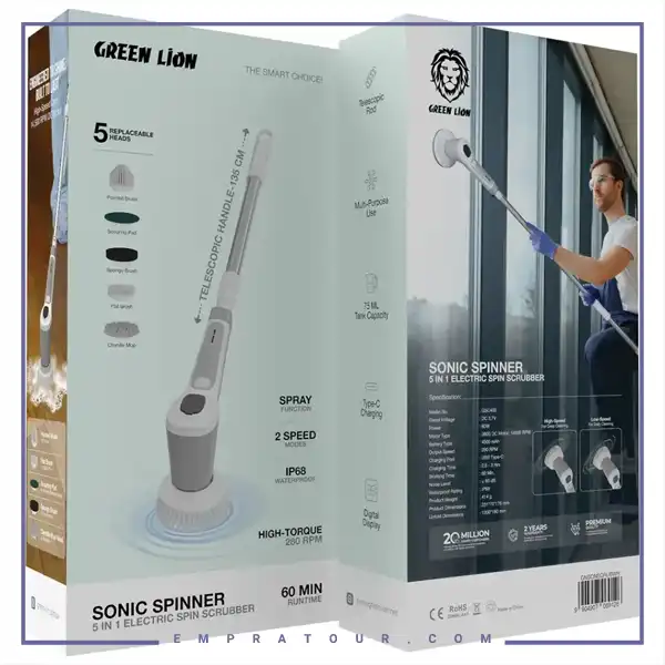 Green Lion Sonic Spinner 5 in 1 Electric Spin Scrubber GNSONSCRUBWH