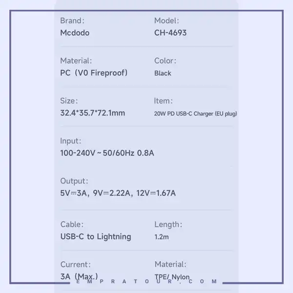 Mcdodo PD20W Fast Charger Kit Charger CH-4693