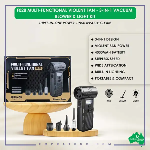 F028 Multi-Functional Violent Fan - 3-IN-1 Vacuum, Blower & Light Kit