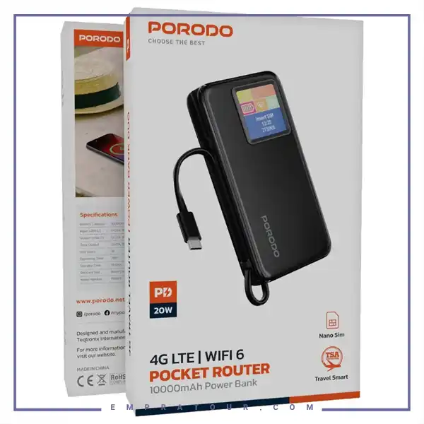 Porodo 4G LTE | WiFi 6 Pocket Router with Power Bank PDPBFCH087BK