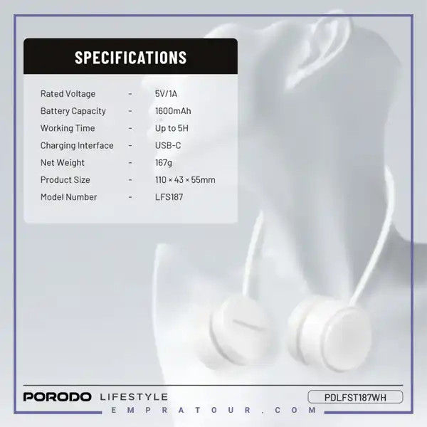 Porodo Airflex Neck Fan LFS187 PDLFST187WH