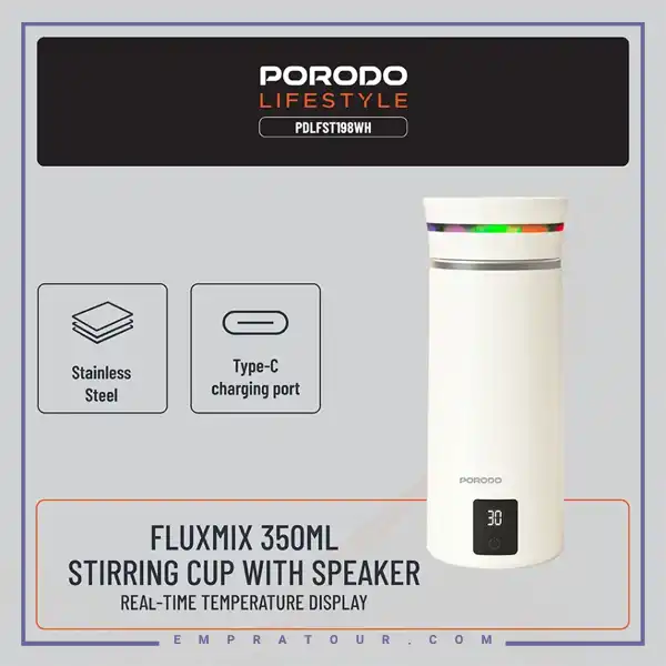 Porodo Lifestyle Fluxmix 350mL Stirring Cup with Speaker PDLFST198WH