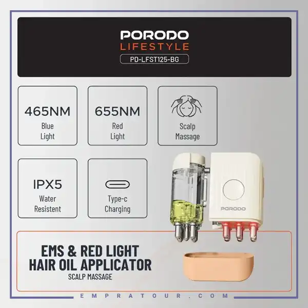 Porodo Lifestyle EMS & Red Light Hair Oil Applicator & Scalp Massage PDLFST125BG
