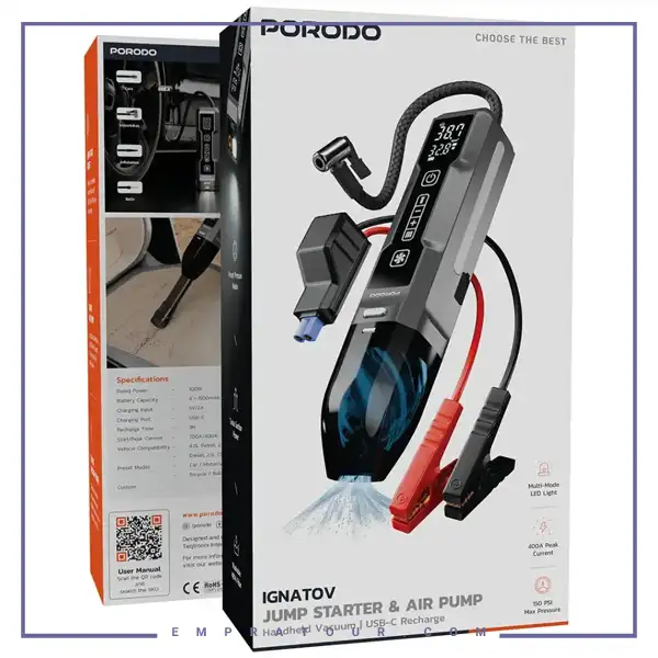 Porodo Ignatov Jump Starter & Air Pump with Handheld Vacuum PDJS41BK