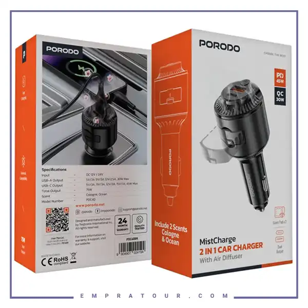 Porodo MistCharge Car Charger with Air Diffuser PDC40BK