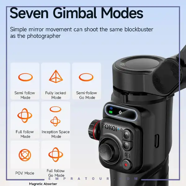 7 حالت گیمبال (Follow / Lock / POV / Inception و …)