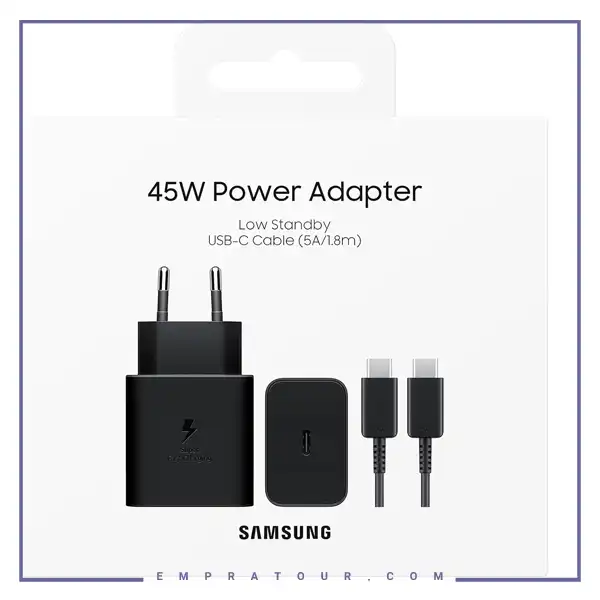 این آداپتور با طراحی جمعوجور و کیفیت ساخت بالا، نشاندهنده تعهد سامسونگ به ارائه محصولاتی با استانداردهای بالا است. بدنه مقاوم و طراحی ارگونومیک آن باعث میشود که استفاده از این شارژر حتی در شرایط سخت نیز کاملاً راحت باشد. کابل ۱.۸ متری همراه با این آداپتور، طول کافی را برای استفاده در فضاهای مختلف فراهم میکند و با تحمل جریان ۵ آمپر، شارژی سریع و پایدار را تضمین میکند.