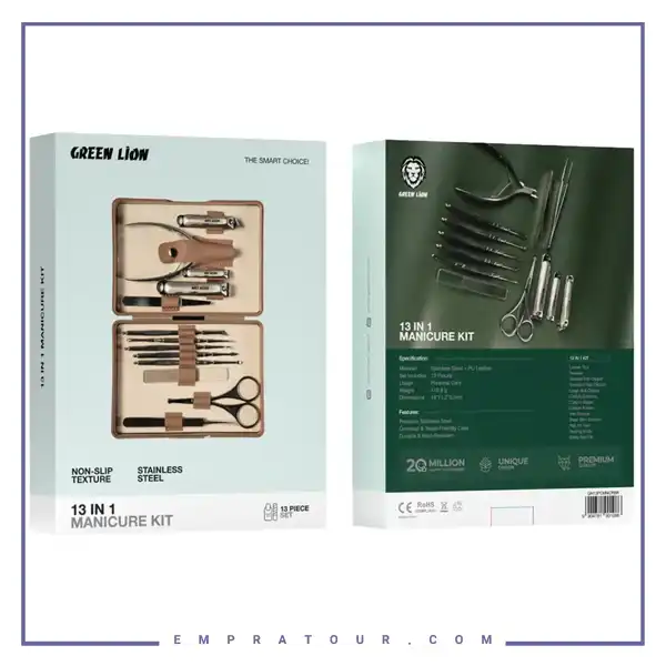 ست مسافرتی مانیکور ۱۳ کاره گرین لاین Green Lion Manicure Kit GN13PCMNCRBR یک مجموعه حرفهای و کاربردی است که ویژگیهای زیر را ارائه میدهد:
